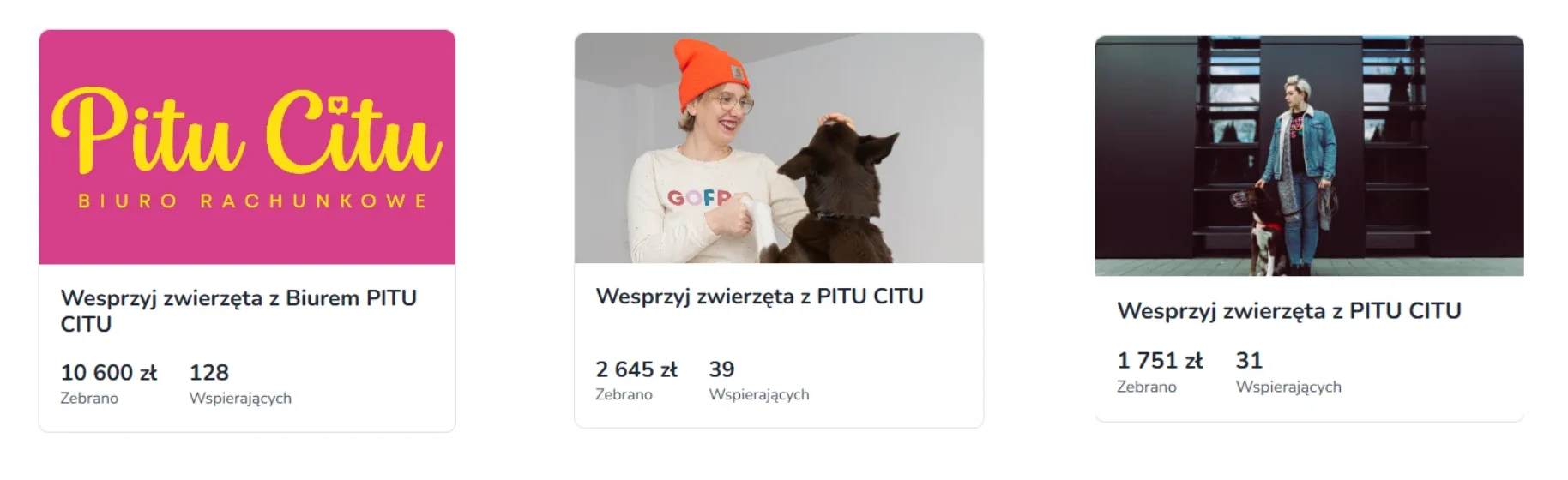 Zaczęło się od drobnych wpłat na różne zbiórki, przez organizowane akcje biura rachunkowego PITU CITU, aż po Fundację. Kochamy pomagać i chcemy to robić na dużą skalę.